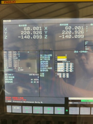 崴立AQ1265新古機(未使用過) 年份:2021 控制器:FANUC 0iMF PLUS 行程:1200/650/610mm 工作台:1400x650mm 主軸:BBT40/直結12000rpm 主軸馬力:20HP 刀庫:24刀 線軌型式:三軸THK線軌 排屑型式:鐵屑輸送機 油霧回收機 底座沖屑 電氣箱冷氣 自動刀長量測 #9.9成新未實際切削過 #開機時數10hrs根本新機