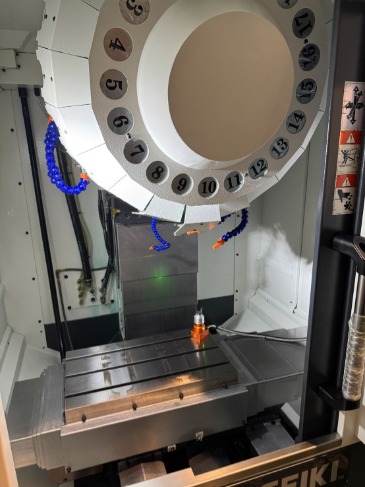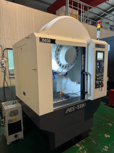 大丸R5030鑽孔攻牙機 年份:2022 控制器:三菱M80 行程:500/300/300mm 工作台:550*320mm 主軸:BBT30/直結10000rpm 刀庫:20刀前置刀庫 線軌型式:三軸線軌 排屑型式:後排 油霧回收機 RENISHAW OMP40自動工件量測 RENISHAW LTS自動刀長量測